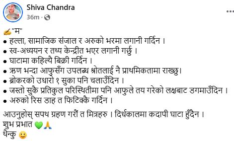 उनको यो सन्देश शेयर बजारका नयाँ तथा पुराना लगानीकर्ताहरूका लागि मार्गदर्शन बन्न सक्ने छ। 📈